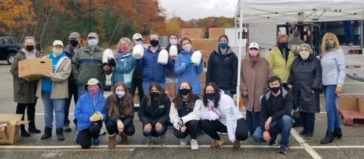 Wayne LeBlond, Alaynah LeBlond, Charity Slade, Makayla Gagnan and Gabby Perry helped distribute 1,100 USDA boxes of food and gallons of milk to local families. They joined local political figures including State Senator Justin Chenette, State Rep. Donna Bailey, Saco Councilor Jodi Mills-