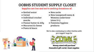 We are also still passing out tagged clynk bags to raise money for Hannaford gift cards/ closet supplies